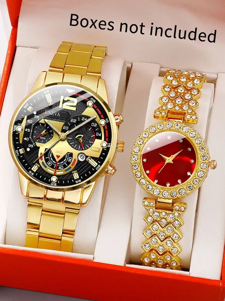 Relógio Casal – Masculino e Feminino, Quartzo Elegante em Liga Metálica